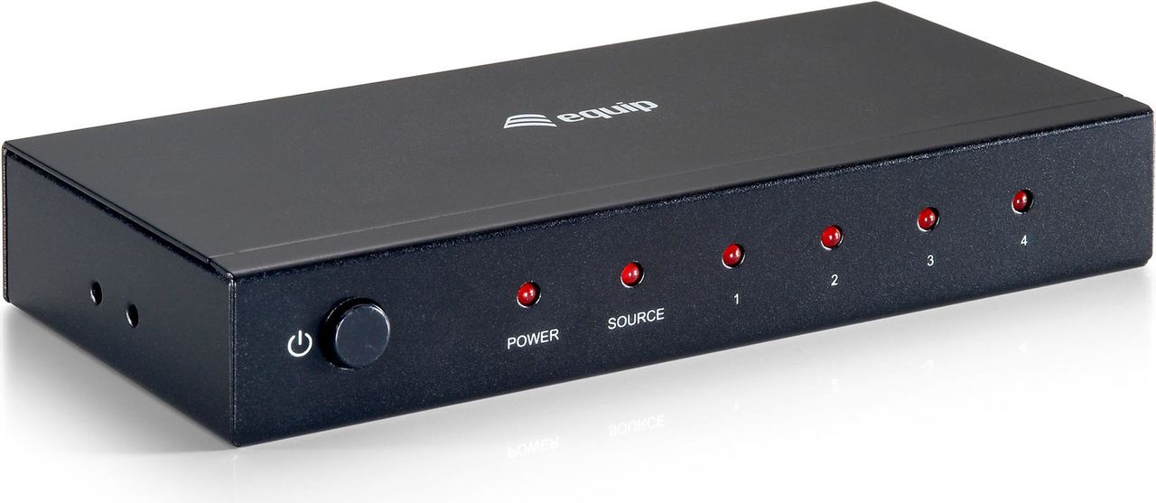 Der equip 4-Port HDMI Splitter verteilt einen Video-Stream auf zwei Displays, um High-Definition Video auf Veranstaltungen, in Heimkinos, Einkaufszentren oder Universitäten mit Leichtigkeit zu ermöglichen.