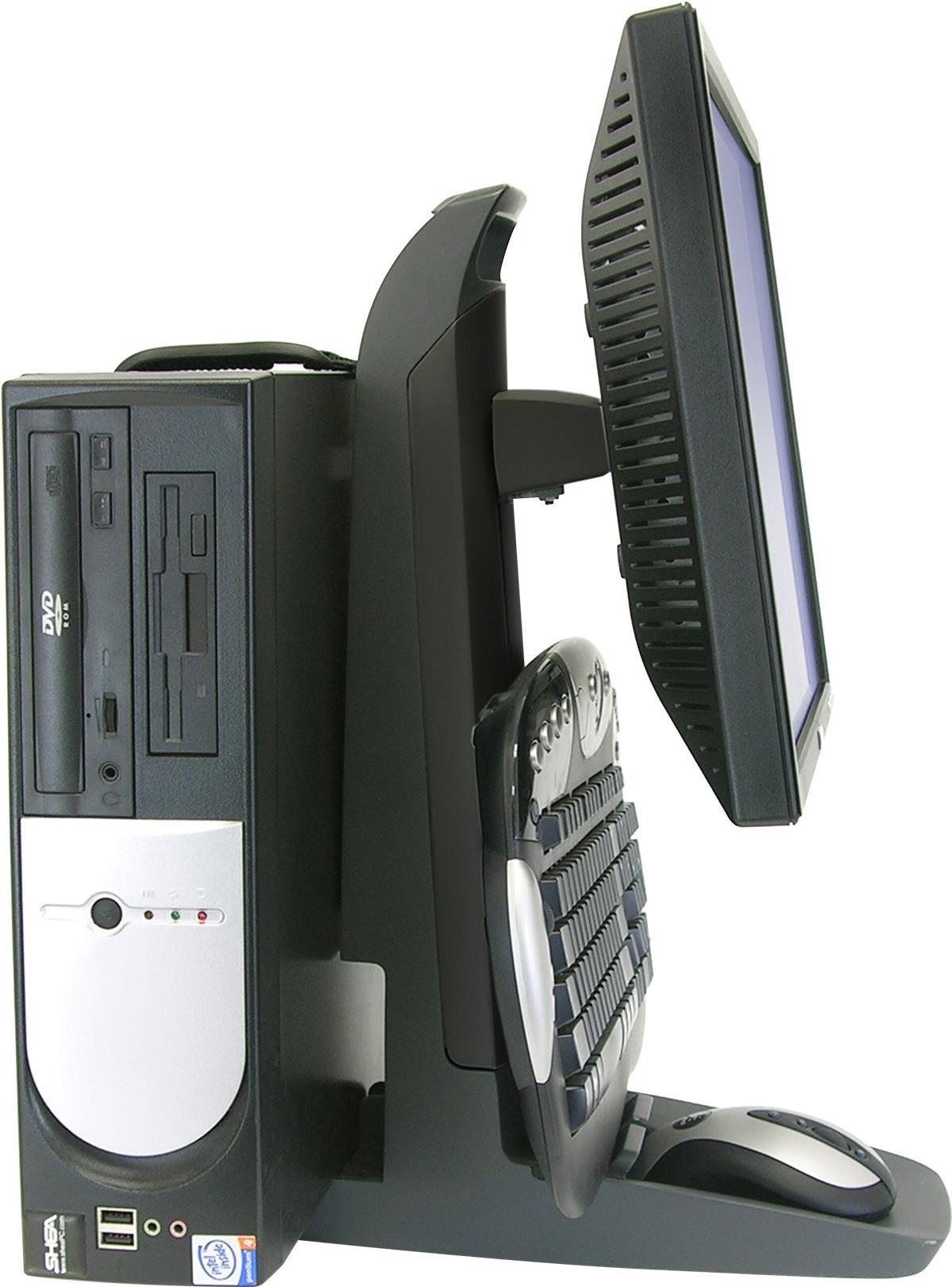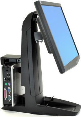Dieser einzigartige All-In-One-Standfuß sorgt für ein Plus an Ergonomie und spart zudem jede Menge Platz. Enthält Secure Clamp (SC), eine einstellbare Computerhalterung. Durch die Anbringung eines PCs und eines Monitors, der sich zudem noch mühelos in der Höhe verstellen lässt, ist der Standfuß das ideale Zubehör beim Einsatz in Bereichen mit geringem Platzangebot.
