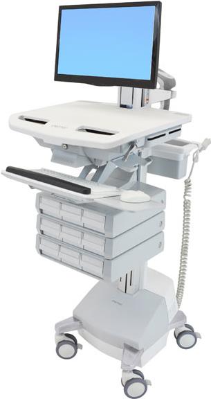 Bleiben Sie produktiv und auf dem neuesten Stand - mit unserem zertifizierten Stromversorgungssystem. Dieser innovative, ergonomische und leicht zu handhabende medizinische Fahrwagen verfügt über eine stufenlose Höhenverstellfunktion für stehende und sitzende Tätigkeiten und eine einstellbare, nach hinten neigbare Tastaturablage. Sein selbstverschließendes Schubladensystem ermöglicht ein einfaches und effizientes Management nicht süchtig machender Medikamente.
