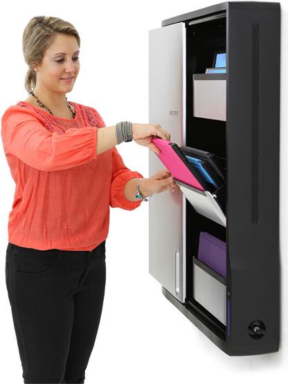 Dieser schlanke Aufbewahrungsschrank ist perfekt zum Laden und Sichern von bis zu 12 Tablets und Chromebooks geeignet. Er ist auf Kompatibilität mit den Produkten vieler Hersteller ausgelegt, wie Microsoft, Samsung, Apple, Lenovo, HP, Dell, Amazon, Asus, Acer u.v.a.