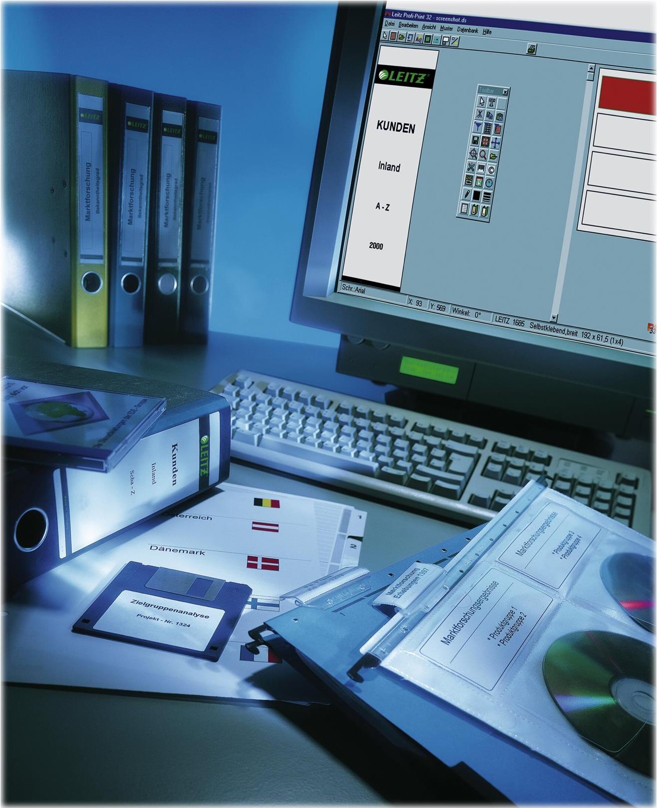 Die PC-beschriftbaren Rückenschilder sorgen für eine übersichtliche Organisation im Regal oder im Archiv. Mit dem nutzerfreundlichen und webbasierten Programm "Easyprint" lassen sich die Rückenschilder nach individuellen Bedürfnissen schnell und einfach gestalten und ausdrucken.