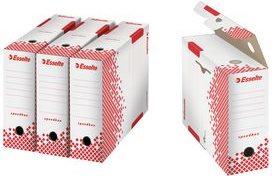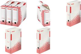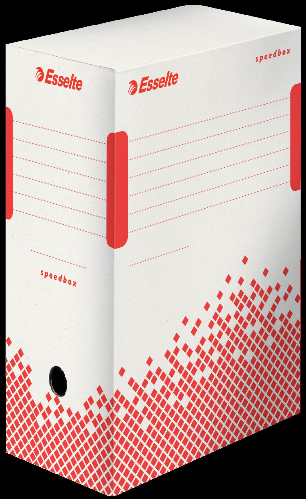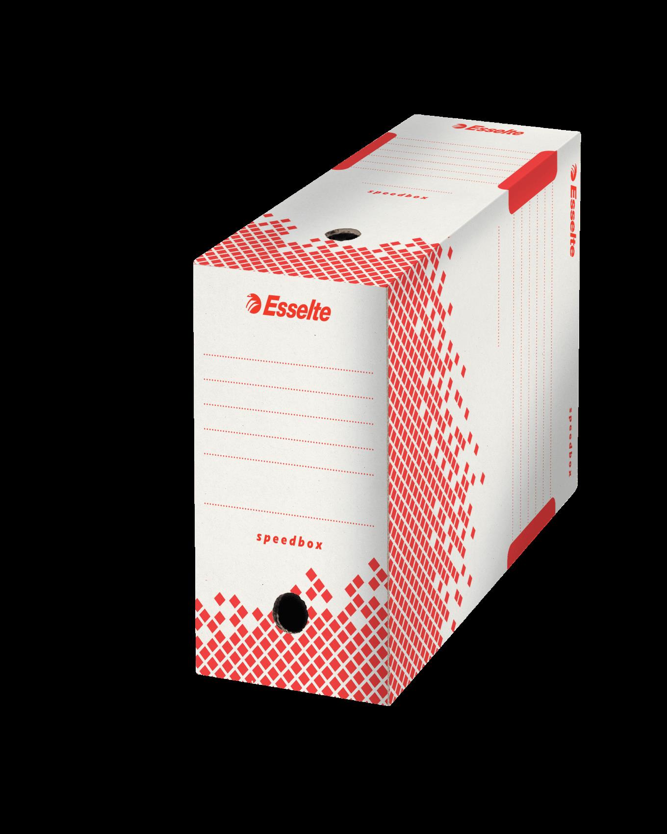 Esselte Archiv-Schachtel SPEEDBOX, DIN A4, weiß/rot,(B)150mm aus 100% recycelter Pappe, zu 100% wiederverwertbar, - 25 Stück (623909)
