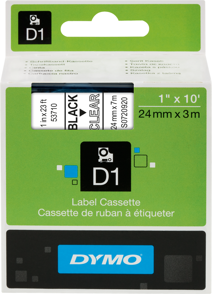 Dymo D1 - Selbstklebende Etiketten - schwarz auf durchsichtig - Rolle (2,4 cm x 7 m) - 1 Rolle(n) - für LabelMANAGER (S0720920)