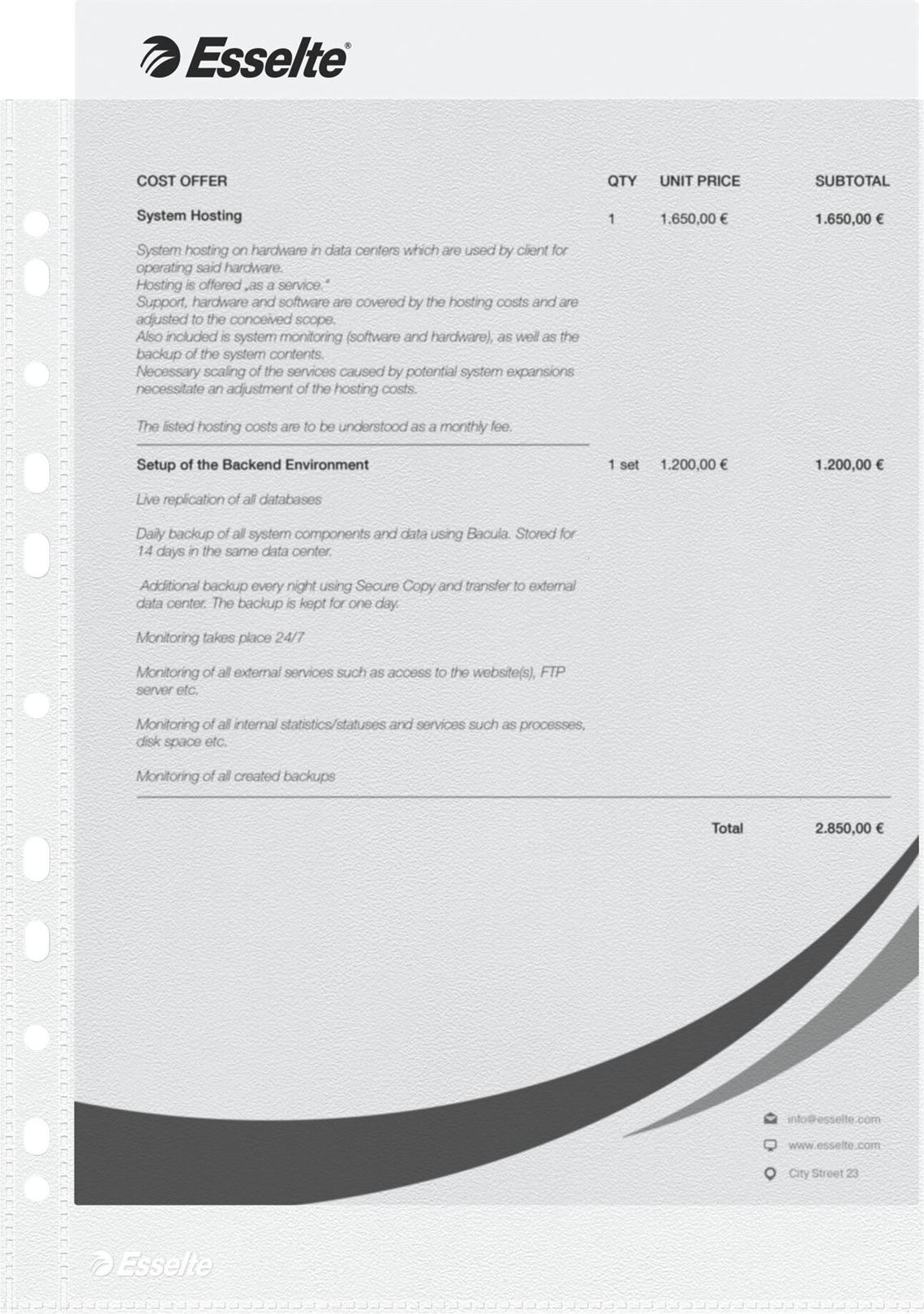 Prospekthülle für den täglichen Gebrauch. Mit Universal-Lochung zur Ablage in Ordnern und Ringbüchern.