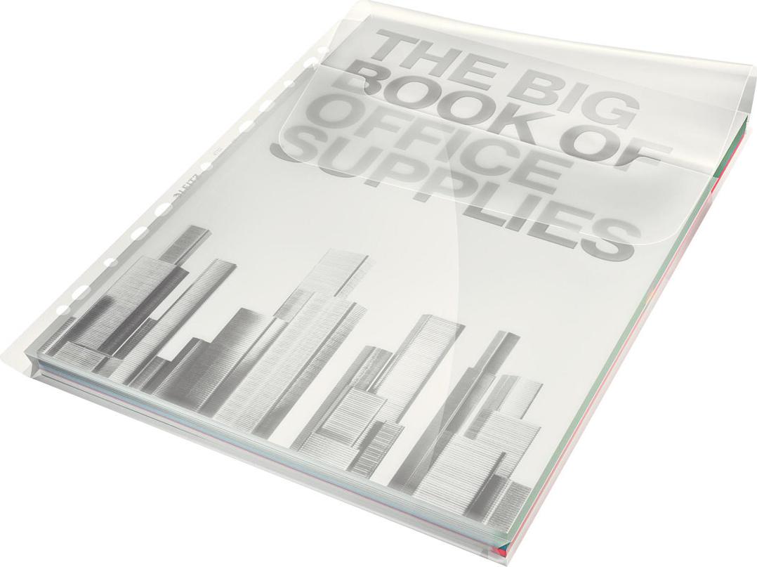 Mit dehnbarer 20 mm Falz auf drei Seiten und Schutzklappe für die Ablage voluminöser Kataloge und Unterlagen. Ideal für die Ablage in Ordnern und Ringbüchern.