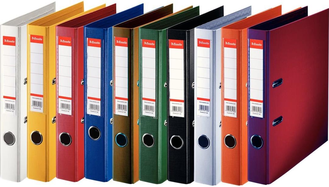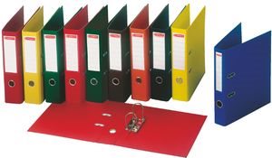 Esselte Plastik-Ordner Standard, DIN A4, 50 mm, sortiert Einband innen und außen mit PP-Folie kaschiert, mit Hebel- mechanik, mit Griffloch und Schlitzen, ohne Kantenschutz, auswechselbares Rückenschild (158 mm), zu 70% ...
