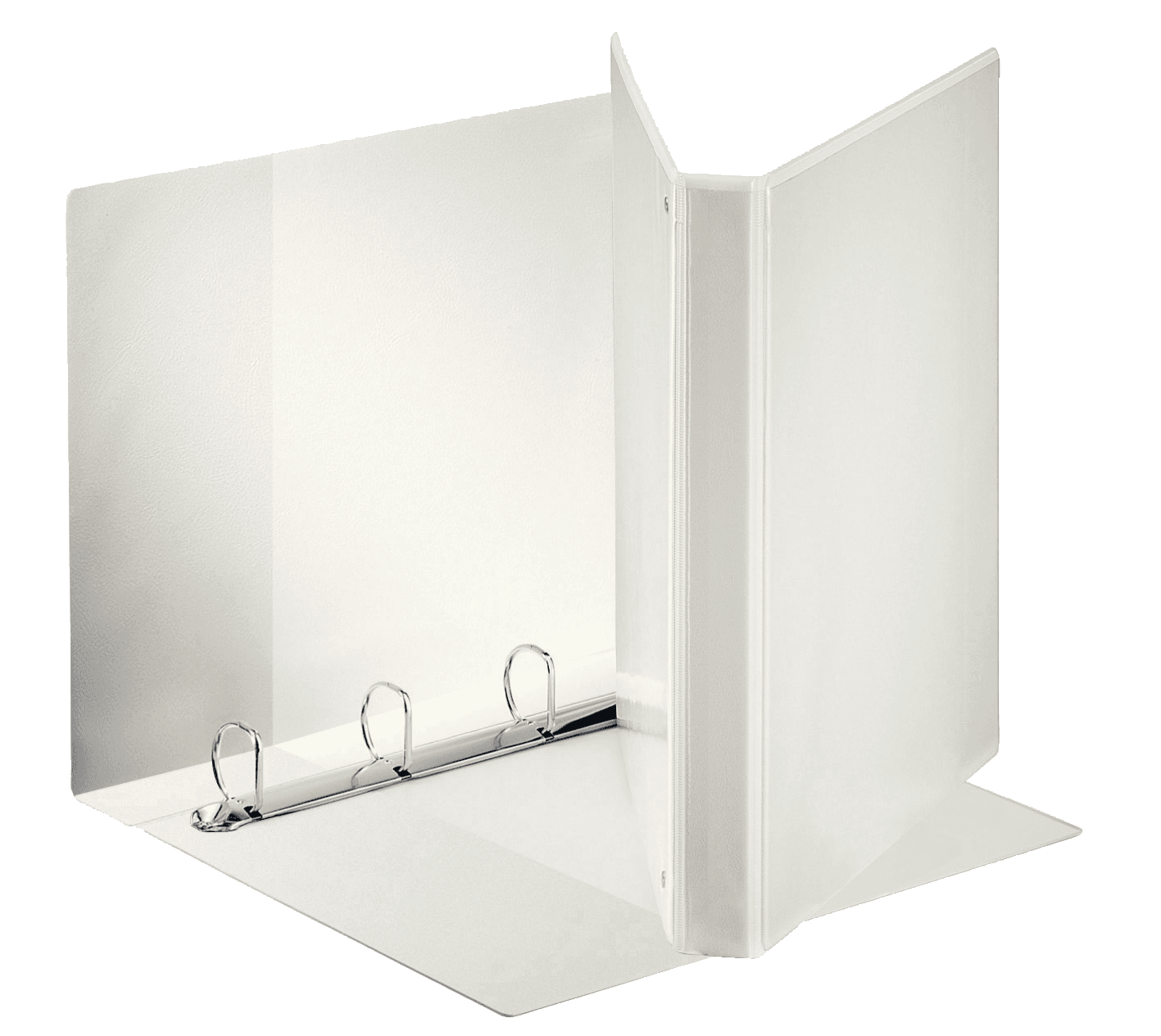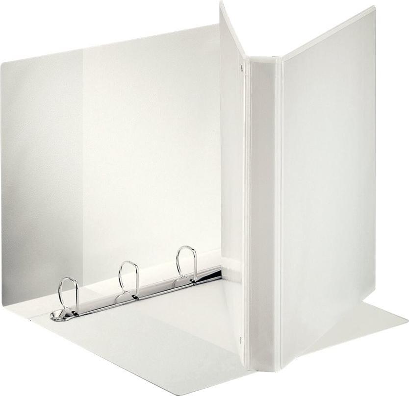 Esselte Präsentations-Ringbuch Standard, A4 Überbreite, weiß 4 D-Ring-Mechanik, Rückenbreite: 35 mm, Ringdurchmesser: 20 mm, Fassungsvermögen: 200 Blatt, mit 3 Außentaschen auf Vorderdeckel, Rückdeckel und Rücken, aus 70% recyceltem Material (55291)
