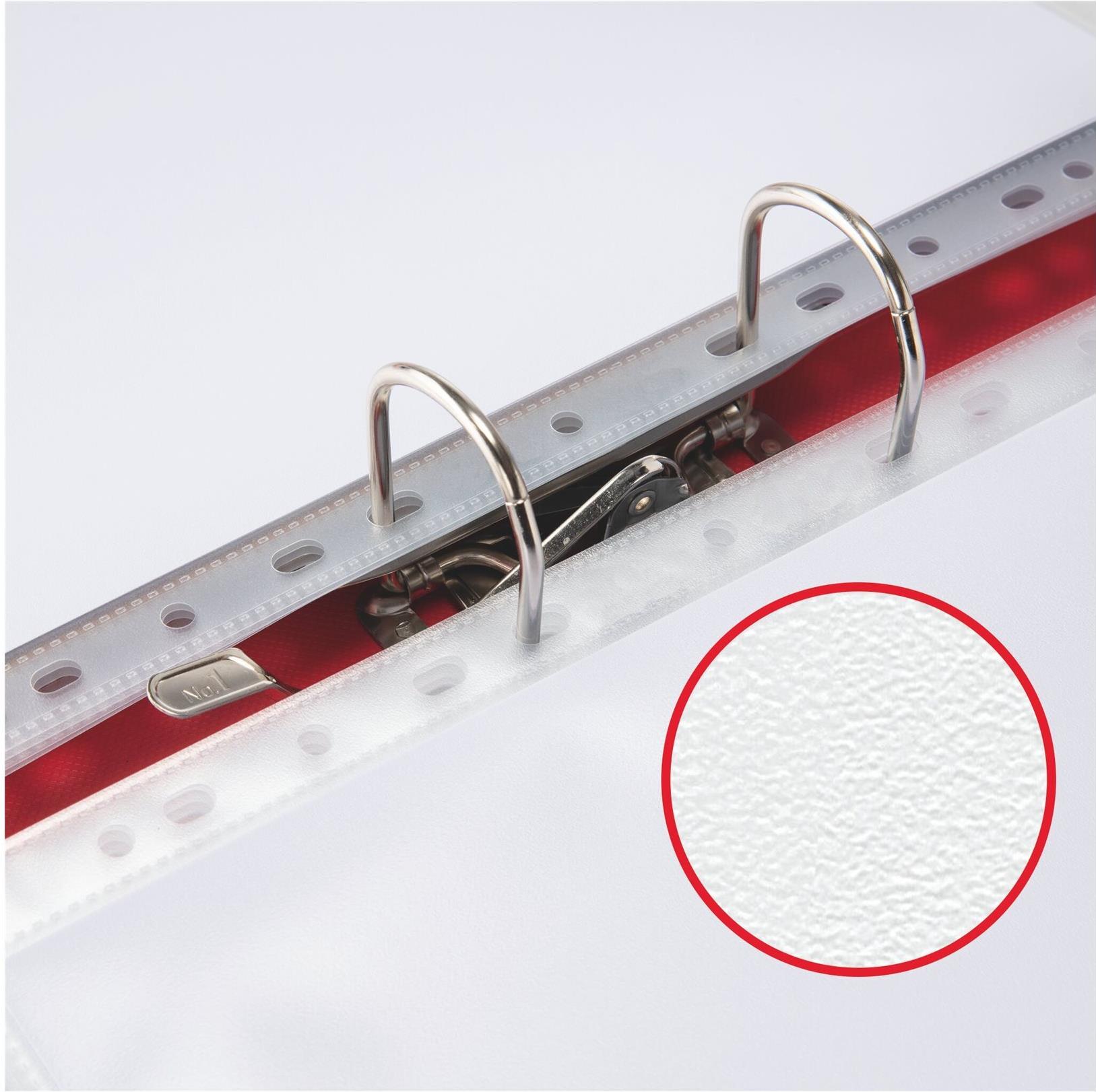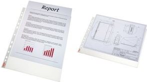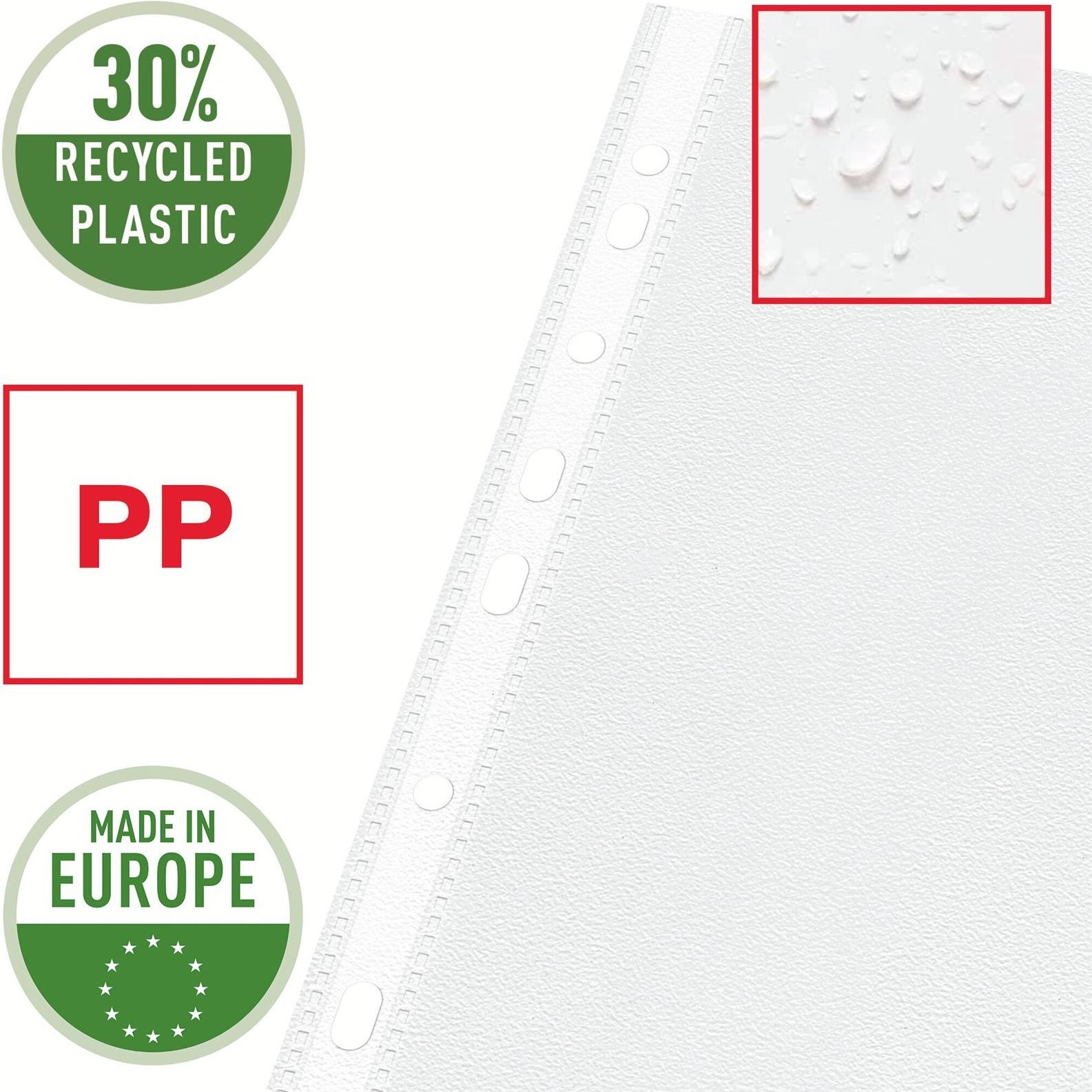 Prospekthüllen mit einer klaren, matten Oberfläche, ideal für den täglichen Gebrauch zu Hause, im Büro oder in der Schule. Die 11-Loch-Universallochung ermöglicht die bequeme Ablage der Hülle in Ordnern und Ringbüchern. Dank Öffnung oben ist der Zugriff auf die Unterlagen sehr einfach und erspart das zusätzliche Öffnen der Ordnermechanik. Dokumentenechtes und säurefreies Material gewährleistet den langfristigen Schutz der Dokumente. Hergestellt aus PP-Kunststoff (Polypropylen) mit 30% vor Gebrauch recyceltem Kunststoff (Industrieabfälle/ -verschnitte bzw. Produktionsreste), zu 100% recycelbar.