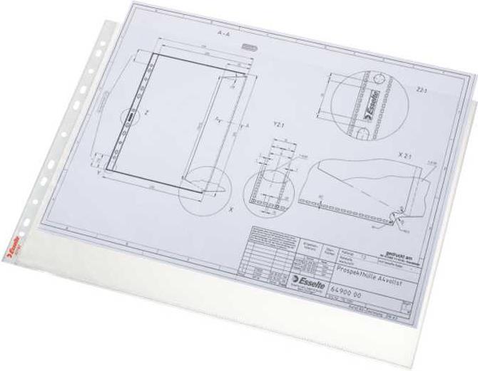 Esselte Prospekthülle Standard Plus, DIN A3 quer, PP, 0,09mm genarbt, farblos, oben offen, dokumentenecht, Multilochung - 1 Stück (55230)