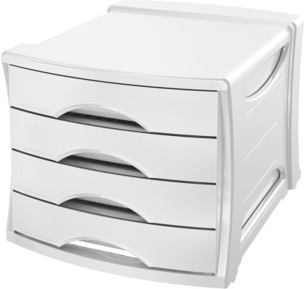 Esselte Schubladenbox VIVIDA, 4 Schübe, weiß aus Polystyrol, stapelbar, mit Griffmulde zum Einfachen (623959)