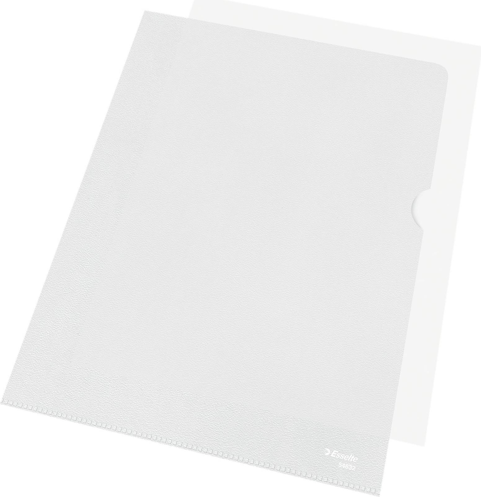 Esselte Sichthüllen Standard, DIN A4, PP, genarbt, 0,12 mm oben und seitlich offen, dokumentenecht, mit Daumen- (54832)