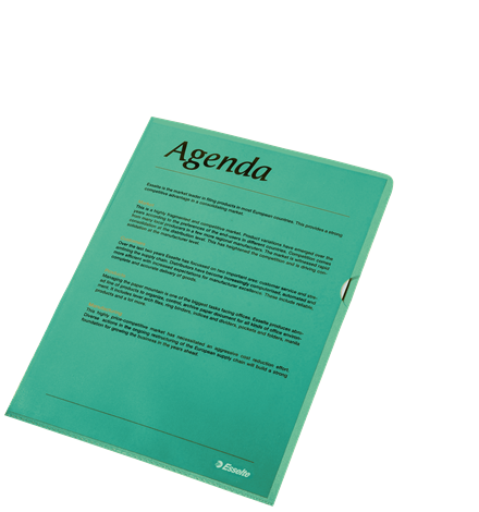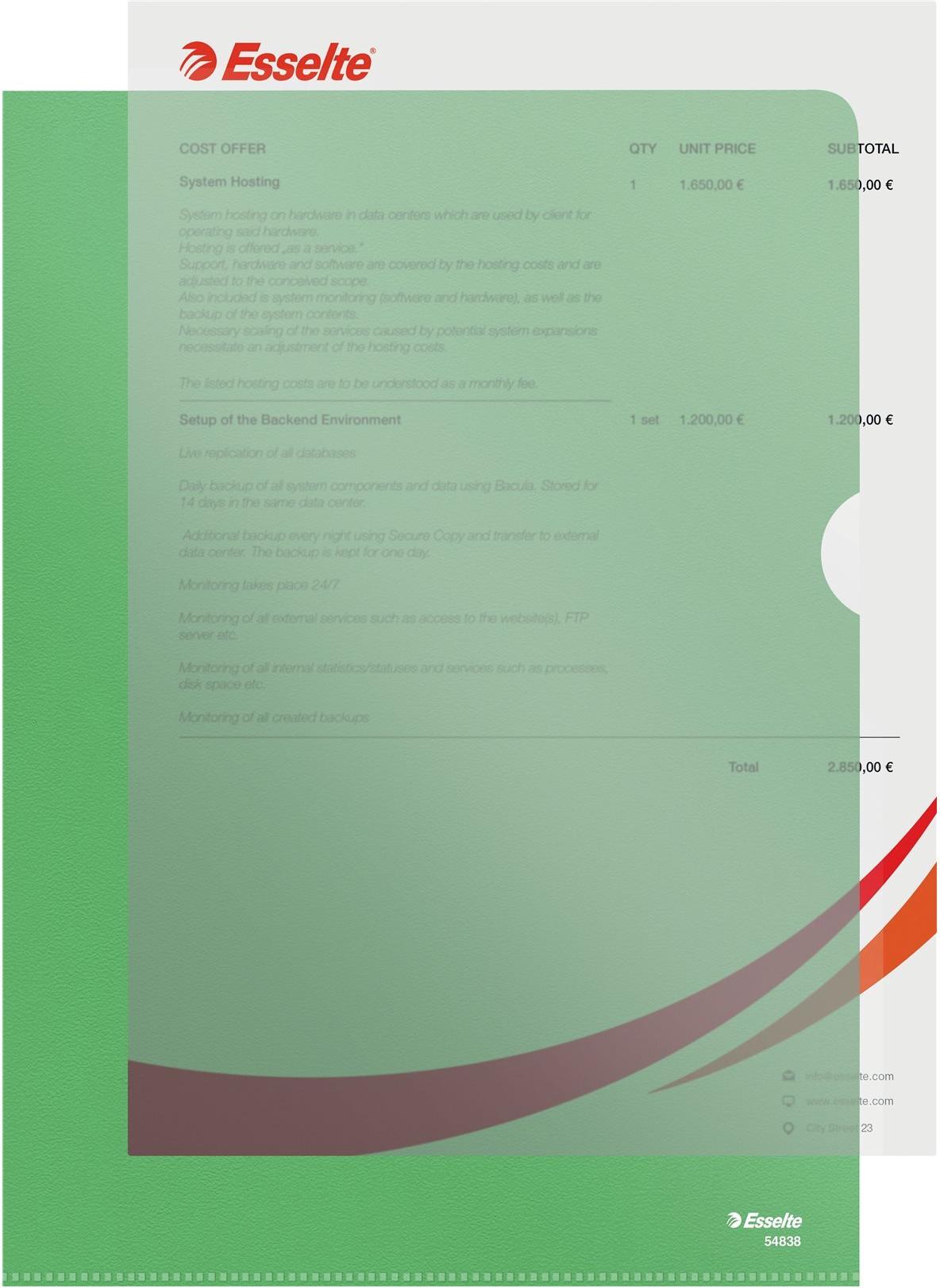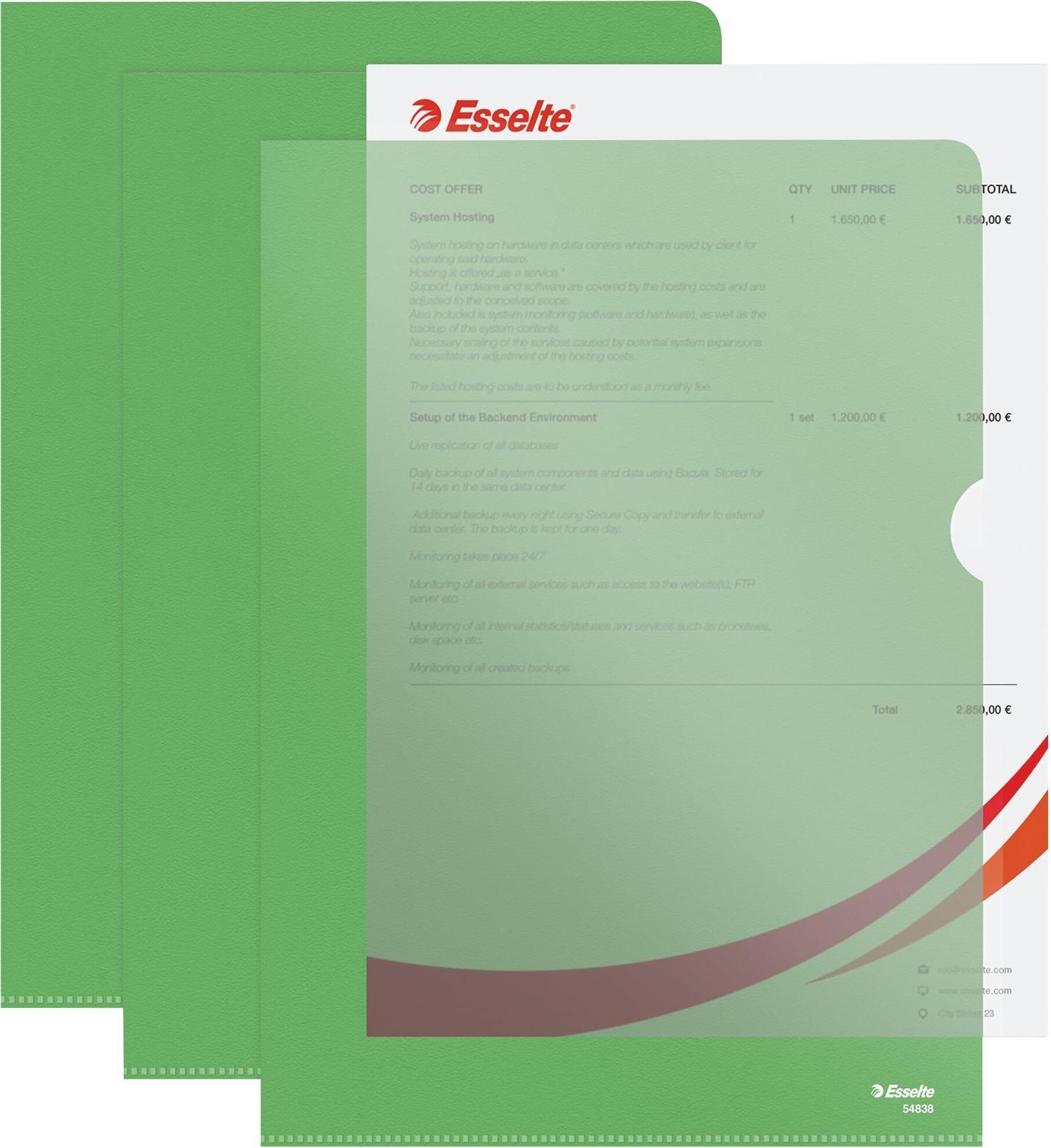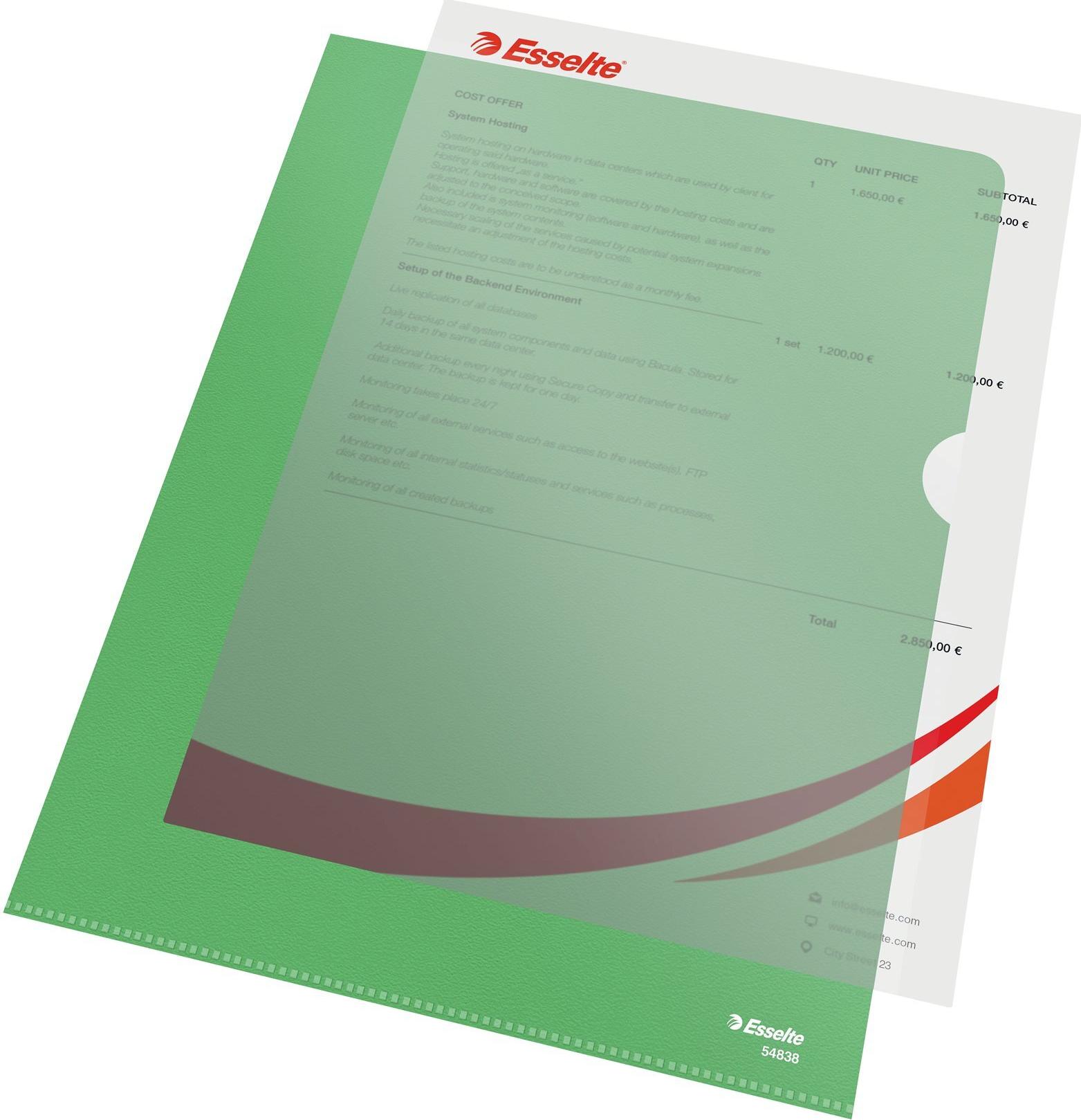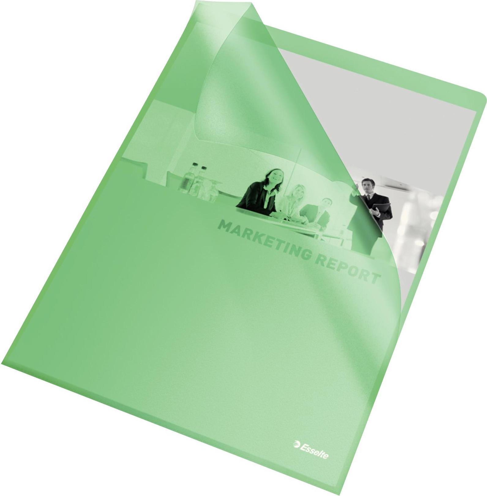 Esselte Sichthüllen Standard, DIN A4, PP, grün, 0,12 mm oben und seitlich offen, dokumentenecht, mit Daumen - 1 Stück (54838)