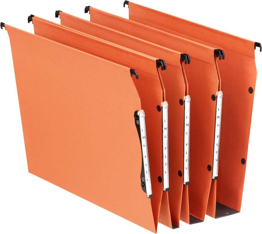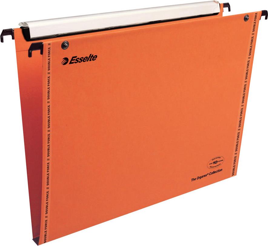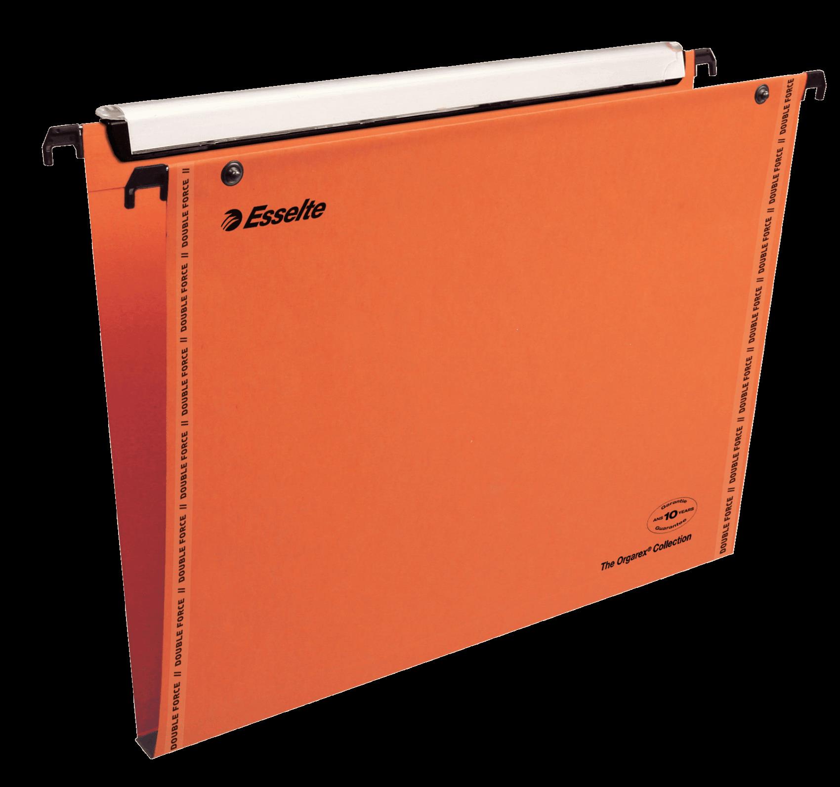 Esselte dossiers suspendus VMG, largeur de fond:15 mm,carton ----------------- Pour le marché: F ------------------------ 240 g/m2, couleur: orange, avec porte étiquette \"visio plus (haut de 18 mm), pour 1 ou 3 lignes, bandes renforcées contenu: 25 pièces (49940)