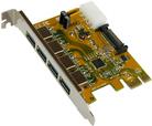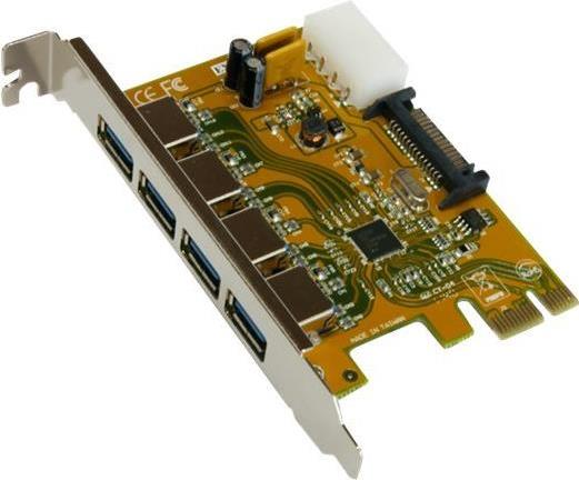 Die EX-11094 USB 3.0 PCI-Express Karte stellt vier Externe Super-Speed USB 3.0 Ports zur Verfügung. Sie ist entwickelt worden um vier weitere USB 1.1, 2.0 oder 3.0 Endgeräte an Ihre Workstation, Desktop oder Server anzuschliessen. Sie unterstützt USB 1.1 Low-Speed (1.5Mbps), Full-Speed (12Mpbs), USB 2.0 High-Speed (480Mbps) und USB 3.0 Super-Speed (5Gbps). Sie ist die perfekte Technologie für Externe Speicher Gehäuse, Digitale Kameras, Webcam, Scanner und mehr. Zur Unterstützung des Stromes von 900mA an den Externen USB 3.0 Ports, benötigt man den Stromanschluss vom PC-Netzteil.
