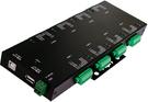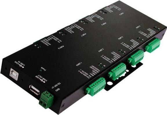 Die EX-1339HMV USB 2.0 zu Seriell RS-232/422/485 in einem Metallgehäuse, stellt acht Serielle RS-232, 422, oder 485 High Performance UART 16C550 Combo-Ausgänge zur Verfügung. Sie ist entwickelt worden um vier weitere Serielle Ausgänge in einem robusten Metallgehäuse für Desktop Computer oder Notebook über den USB 2.0 Bus zu erweitern. Durch die einfache Installation muss der Rechner nicht geöffnet werden und der Artikel EX-1339HMV kann bei laufendem Betrieb installiert werden. Das mitgelieferte Kabel EX-K1552V A-Stecker auf B-Stecker kann ohne Schraubenzieher an der EX-1339HMV mit Rändelschrauben befestigt werden. Mit dem Artikel wird die EX-6099 (Din-Rail-Kit) mit geliefert, somit kann die EX-1339HMV auch auf eine Trägerschiene in einem 19" Rack installiert werden. Die EX-1339HMV hat LED Anzeigen für Betriebsfunktionen und Datenübertragungen. Die EX-1339HMV kann um 14 Module erweitert werden. Somit können Sie an Ihr Computer System bis zu 112 Serielle Ports anschließen.