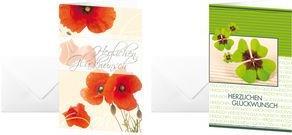 Glückwunsch-Karten "Red Poppies" mit roten Mohnblumen als Motiv sind flexibel einsetzbar. Die Karten sind zum Bedrucken mit InkJet- und Laser-Drucker sowie zum Kopieren geeignet und haben eine Grammatur von 220g/m². Im ...