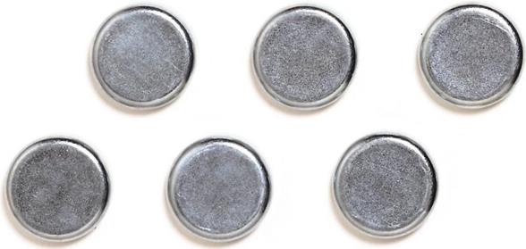 Magnet. Sonderform: rund. Oberfläche glatt, für bis zu 17 Blatt DIN A4, 80 g/qm. Größe (B x H) oder (Ø): 10 mm. Tragfähigkeit: 2000 g. Farbe: chrom.