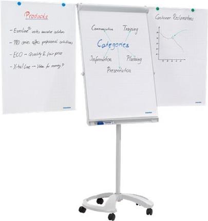 FRANKEN Flipchart Mobil Deluxe, 670 x 950 mm, hellgrau Tafel magnethaftend, Einbeinstativ, Rundfuß mit 5 Lauf- (FC81)