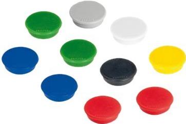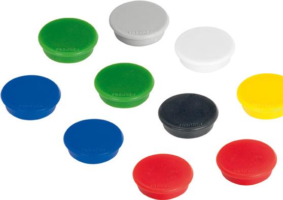 FRANKEN Haftmagnete 32mm 10 Stueck farbig sortiert rot gruen blau schwarz Drchm. 32mm Tragfaehigkeit 800g (HM30 99)