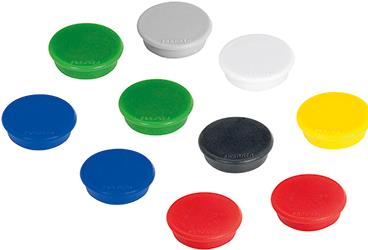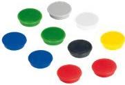Kraftmagnet. Sonderform: rund. Für bis zu 20 Blatt DIN A4, 80 g/qm. Größe (B x H) oder (Ø): 38 mm. Tragfähigkeit: 2500 g. Ausführung des Inhalts mit Packung: Karton mit 10 Stück.
