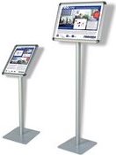 Steht immer richtig, informiert punktgenau! Mit den eleganten und praktischen Infodisplays übersieht keiner Ihrer Kunden Ihre Aushänge! Das Klapprahmenprofil sorgt für einfaches und schnelles Wechseln der Einlagen. Die Antireflex-Schutzfolie mit UV-Filter schützt die Inhalte.