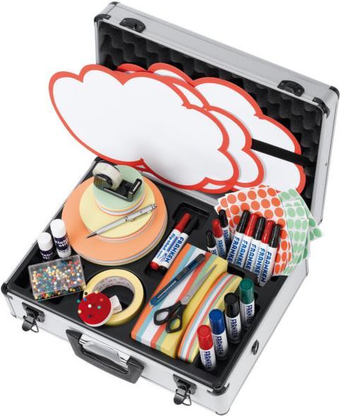 Das perfekte Zubehör bei Präsentationen, Trainings und Meetings: Abschließbarer, robuster Moderationskoffer mit über 2500 Teile, inkl. Tragegriff und Schultergurt.