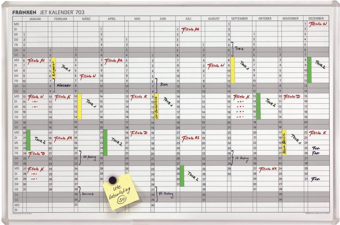 • Franken Jahreskalender, Plantafel JetKalender® JK703 Weiß Magnet 90 cm x 60 cm
