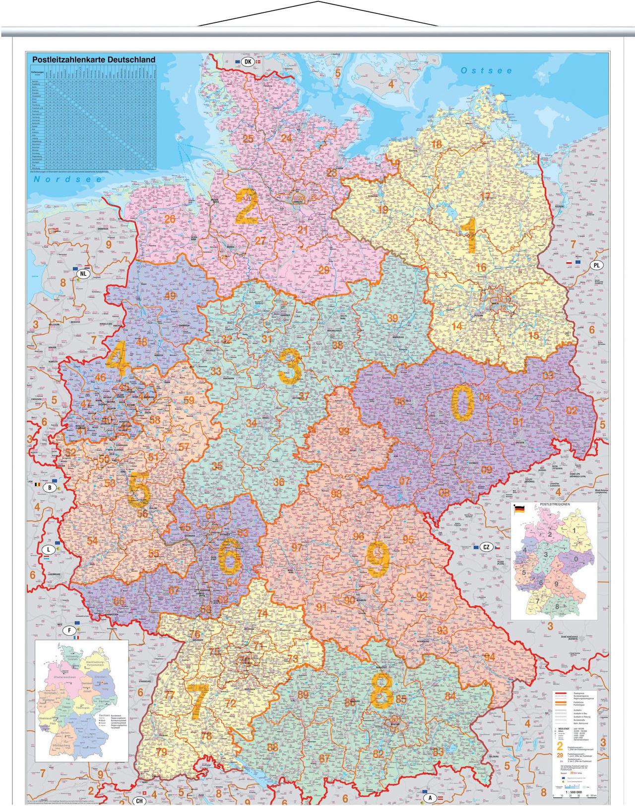FRANKEN Postleitzahlen-Karte, laminiert, 970 x 1.370 mm Karte mit Metallleisten oben und unten, beschriftbar (KAM400)