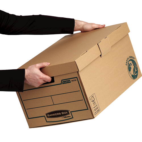 Große, stabile Klappdeckelbox mit dreifach verstärkten Trageseiten und doppeltem Boden Verstärkte Tragegriffe für komfortablen und sicheren Transport Kompatibel mit Ordnern, Ringbüchern und Bankers Box® Earth Series ...