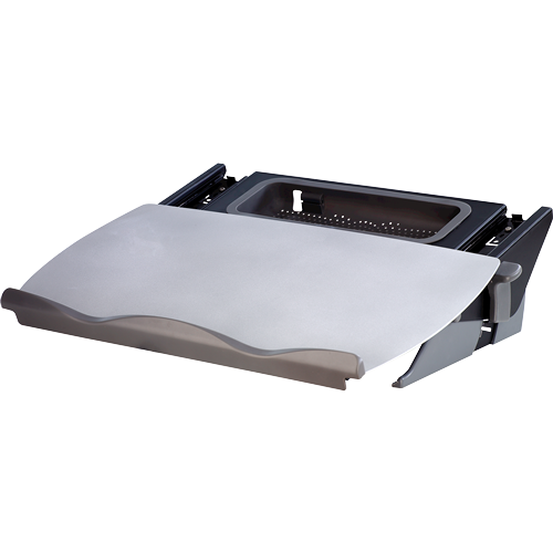 - Plattform gleitet stufenlos nach vorne zur Abdeckung der Tastatur und Schaffung einer ergonomischen Schreibunterlage
