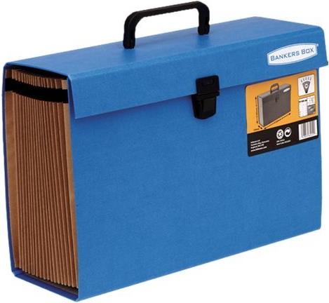 • Fellowes BANKERS BOX Fächertasche Handifile, 19 Fächer, blau Faserplatten-Konstruktion, Tragegriff, Schnappverschluss (9352201)