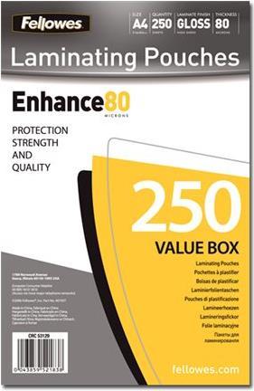 Fellowes Laminating Pouches - Taschen für Laminierung - 80 Mikron - 250 x glänzend - 216 x 303 mm (5312903)