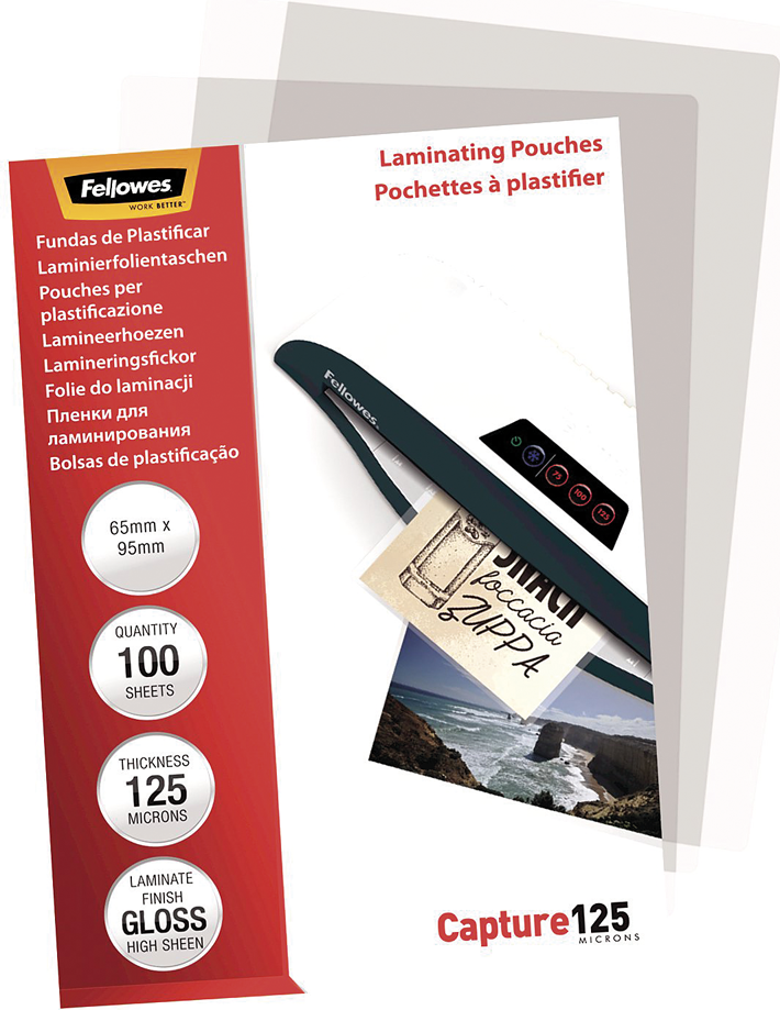 Fellowes Laminating Pouches Capture 125 micron - 100er-Pack - glänzend - 65 x 95 mm - Taschen für Laminierung |