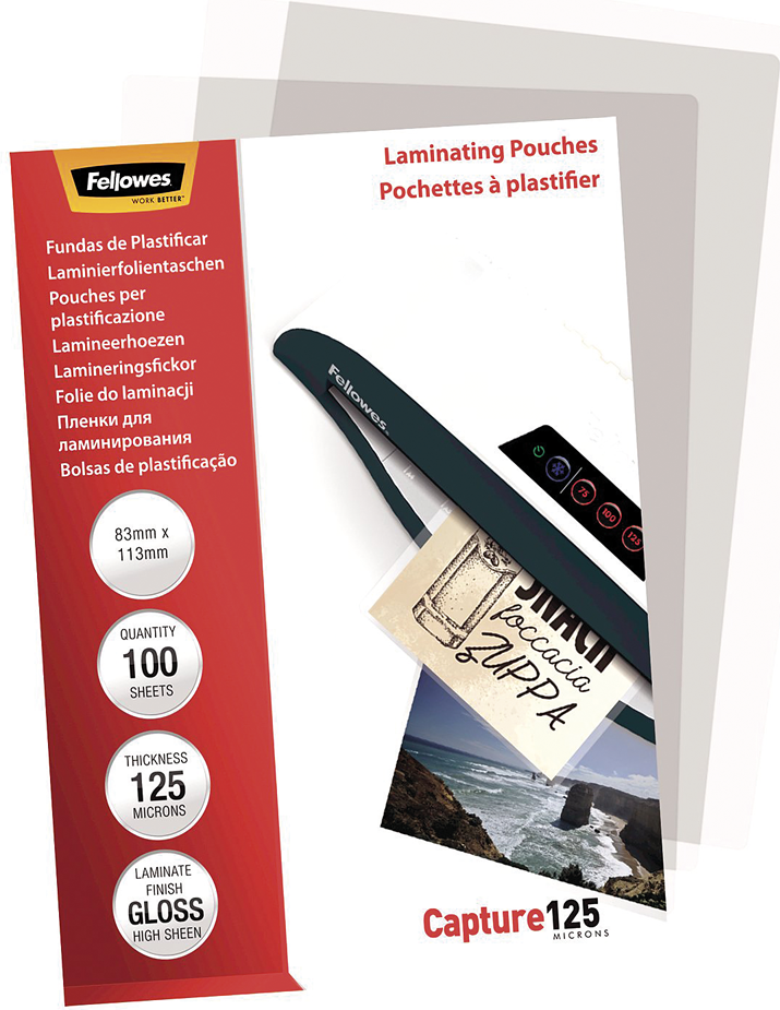 Fellowes Laminating Pouches Capture 125 micron - 100er-Pack - glänzend - 83 x 113 mm - Taschen für Laminierung (53071)