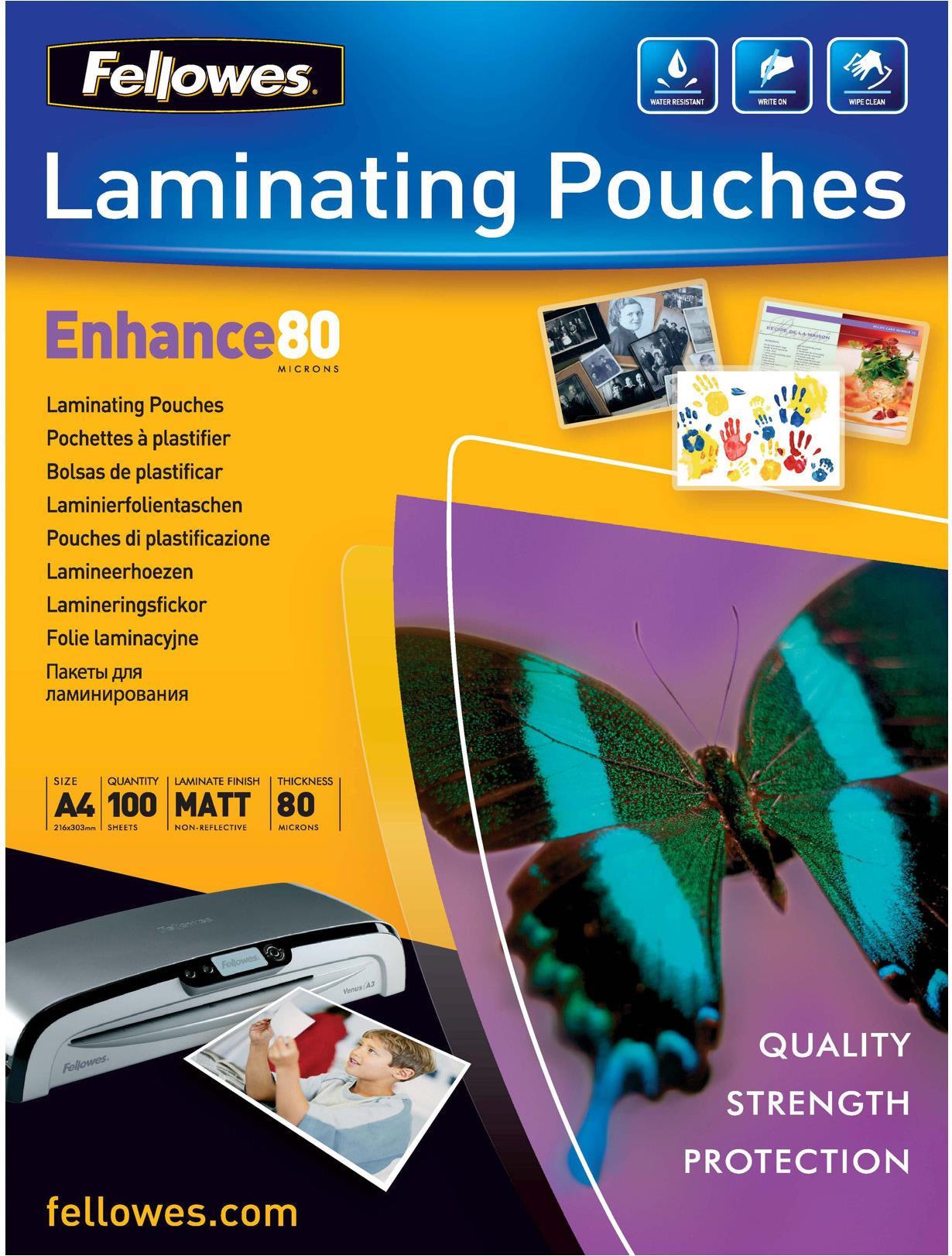 Fellowes Laminating Pouches Enhance 80 micron - Taschen für Laminierung - Matte |