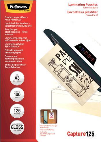 Fellowes - Klebstoff - 125 Mikron - 100er-Pack - glänzend - A3 (297 x 420 mm) Taschen für Laminierung (5329001)