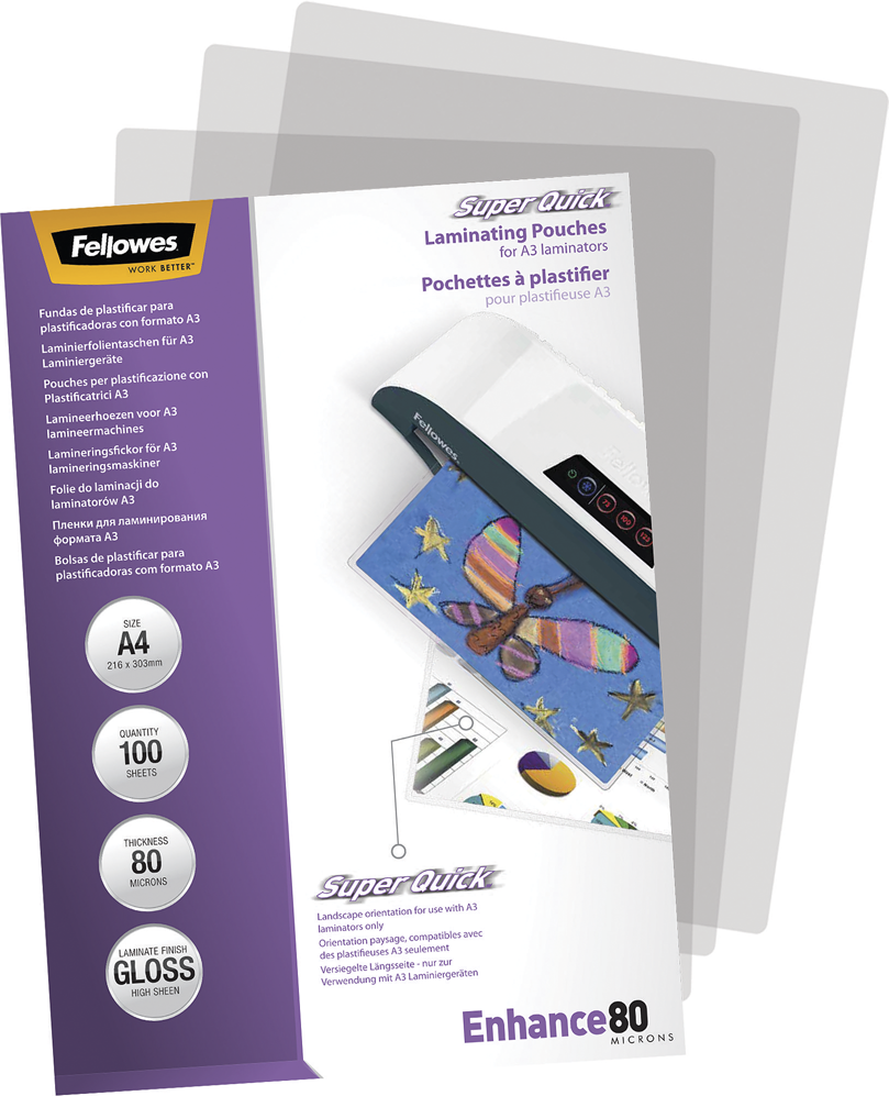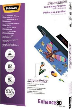 Fellowes Laminating Pouches SuperQuick Enhance 80 micron - 100er-Pack - glänzend - Taschen für Laminierung |