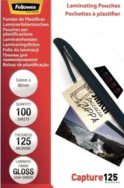 Fellowes glänzende Laminierfolientaschen, 54 x 86 mm, 125µ, VE: 100 Stück (5306302)