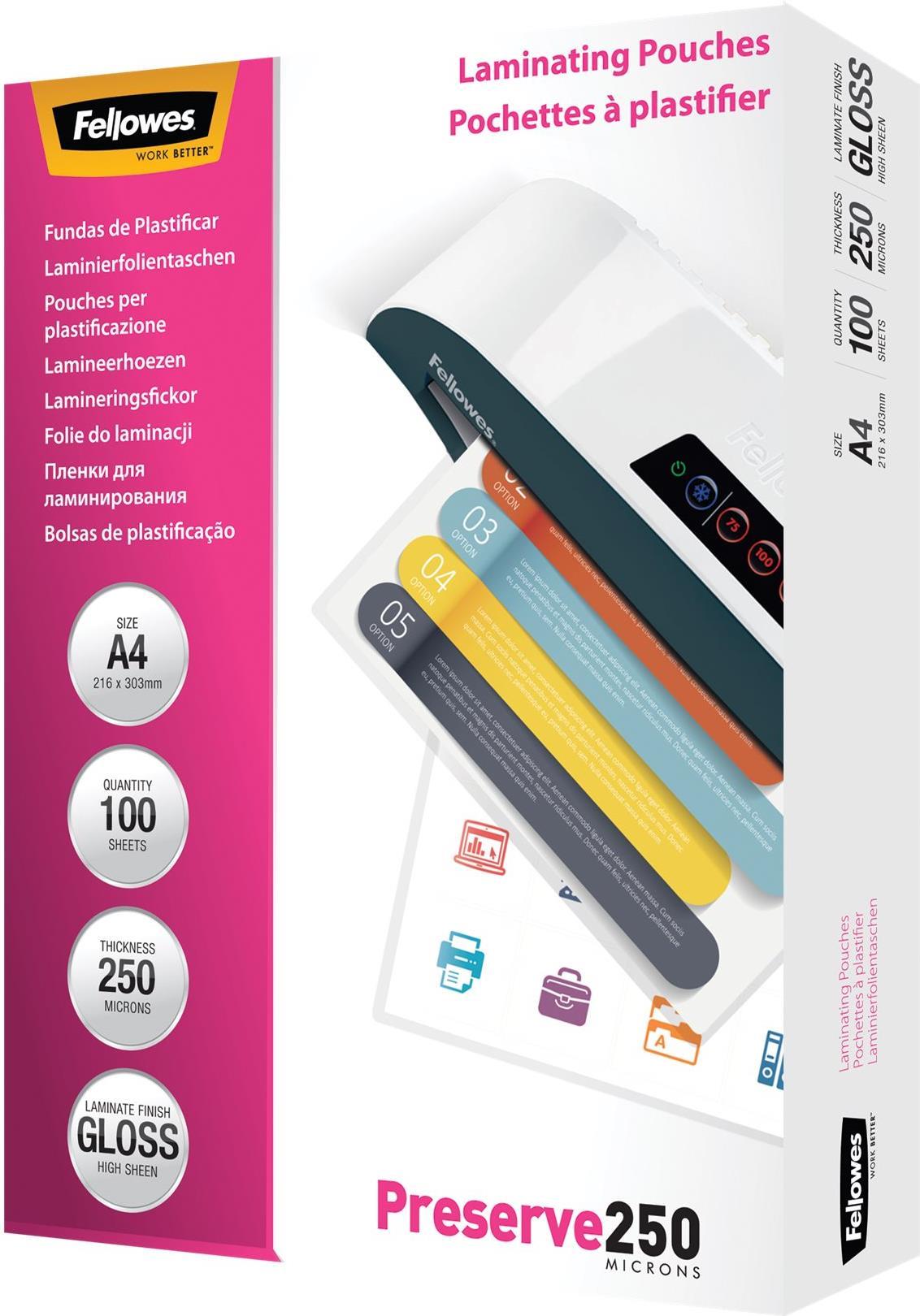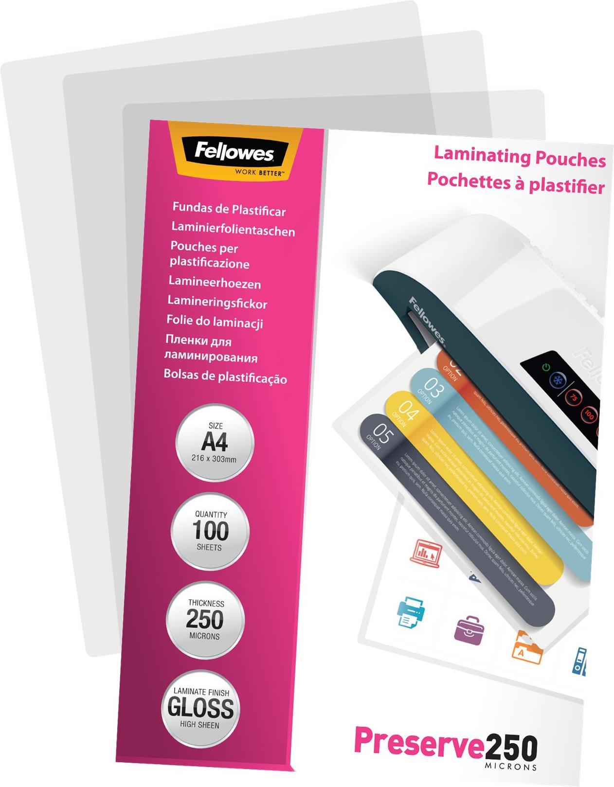 • Fellowes glänzende Laminierfolientaschen, 54 x 86 mm, 125µ, VE: 100 Stück (5306302)