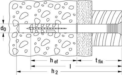 Kunststoff-Nageldübel. Der Dübel wird beim Einschlagen der Nagelschraube gespreitzt und hält durch den Anpressdruck an der Bohrlochwandung. Zur Befestigung von: Wandanschluss- und ...