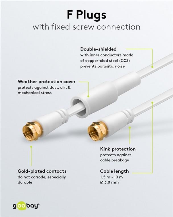 Wentronic Goobay SAT Flachkabel, 100% geschirmt, vergoldet, wettergeschützt, Weiß, 1.5 m - F-Stecker <=> F-Stecker (67287)