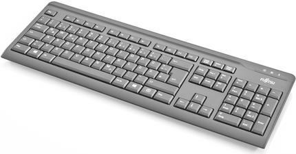 Die Fujitsu-Tastatur KB400 USB ist eine hochwertige, äußerst funktionelle Tastatur. Mit ihrem platzsparenden Design ist sie eine gute Lösung für jeden Arbeitsplatz. Das ergonomische Tastendesign erlaubt schnelles und effektives Arbeiten. Es ist das perfekte, zuverlässige Eingabegerät für alle Routine-Büroaufgaben, wenn Sie mit einem Desktop-PC oder anderen Systemen mit USB-Schnittstelle arbeiten.