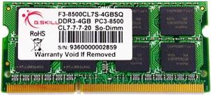 G.Skill SO-DIMM 4 GB DDR3-1066 (F3-8500CL7S-4GBSQ, für MacBook (Pro)) (F3-8500CL7S-4GBSQ)
