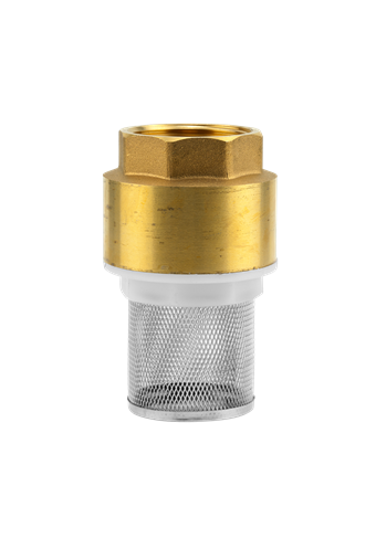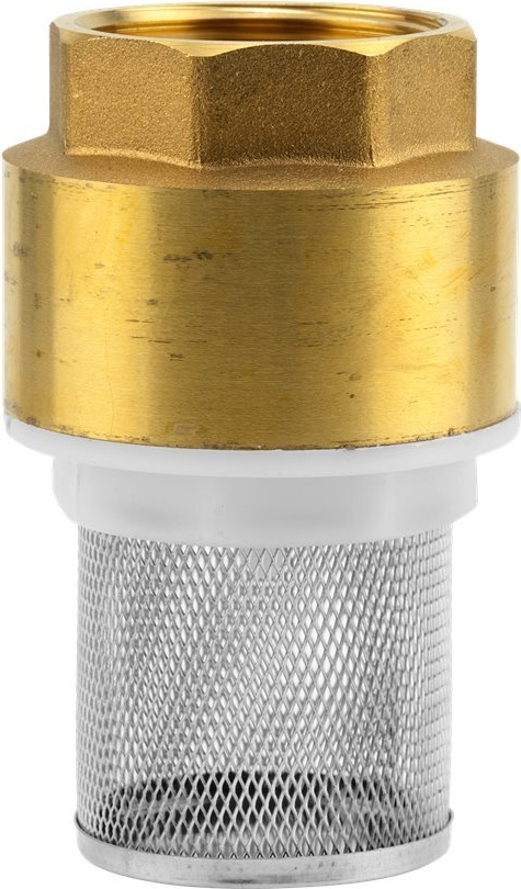 Das Fußventil besteht aus einem Saugkorb, einem Ventilkegel und einer Dichtung. Der Ventilkörper selbst ist aus Messing, der Saugkorb aus feinmaschigem Niro-Stahlgeflecht. Das Ventil ist sowohl senkrecht als auch waagrecht einsetzbar. Mit 42 mm (G 1 1/4)-Gewinde.Beschreibung