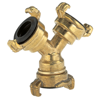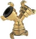 Der Messing-Schnellkupplungs-Verteiler eignet sich zur Abzweigung eines Schlauches und zum Übergang zweier Schläuche mit verschiedenen Größen, z.B. von 19 mm (3/4\")-Schläuchen auf 13 mm (1/2\")-Schläuche.