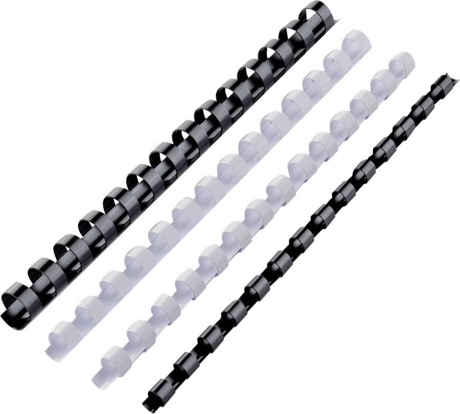 Mit den CombBind Plastikbinderücken können Sie stilvoll gebundene Dokumente erstellen. Die gebundenen Seiten sind flach liegend und ermöglichen so bequemes Erstellen von Notizen oder das Kopieren einzelner Seiten. Sie sind aus hochwertigem, strapazierfähigem Material hergestellt und sind kratzfest. A5, 12 mm, 100 Stück.