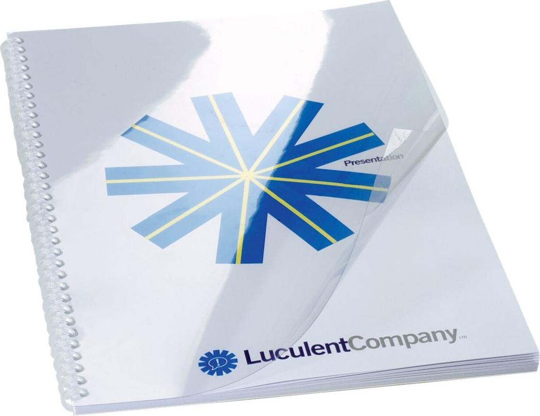Die HiClear Deckblätter aus strapazierfähigem transparenten PVC werten Ihre Dokumente auf. Die Titelseite bleibt sichtbar und der Inhalt ist geschützt. DIN A4, 250 Mikron, 50 Stück.