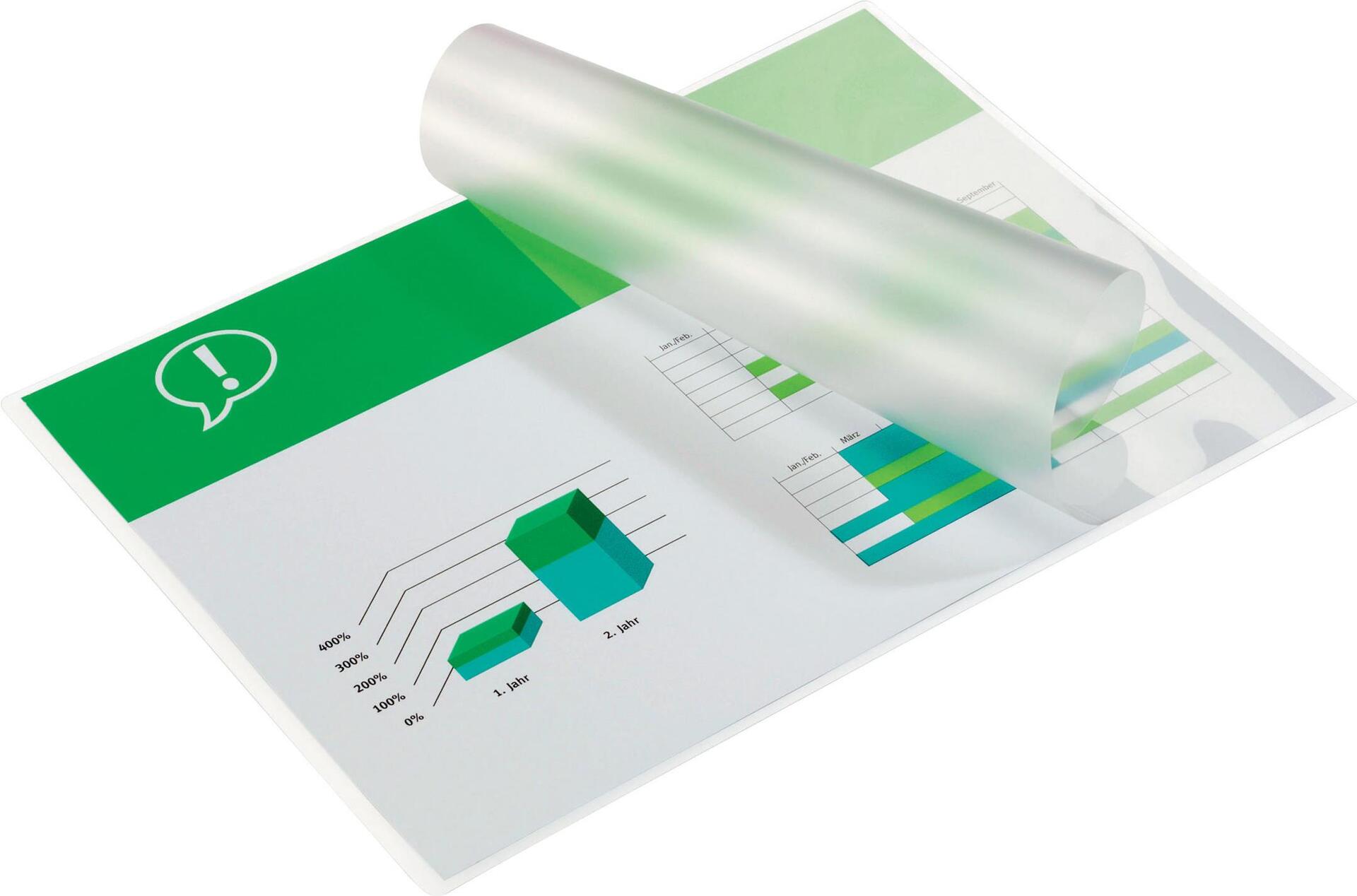 Laminiertaschen sind eine praktische Lösung im Alltag zum Schutz und zur Aufwertung von häufig verwendeten Dokumenten, wie Präsentationen, Referenzlisten, Produktblättern oder Fotos, 2 x 75 Mikron, glänzend, Format A6, 100 Stück.