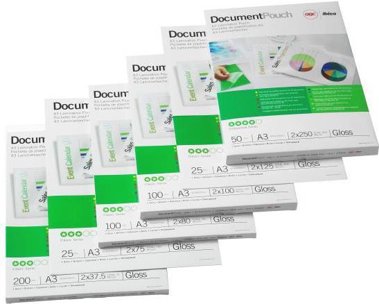 GBC Laminierfolientasche, DIN A3, glänzend, 150 mic DocumentPouch, 2 x 75 mic, Maße: 303 x 426 mm, für Heißlaminierung, Mischung aus Polyester und Polyethylen Inhalt: 25 Stück (3740486)