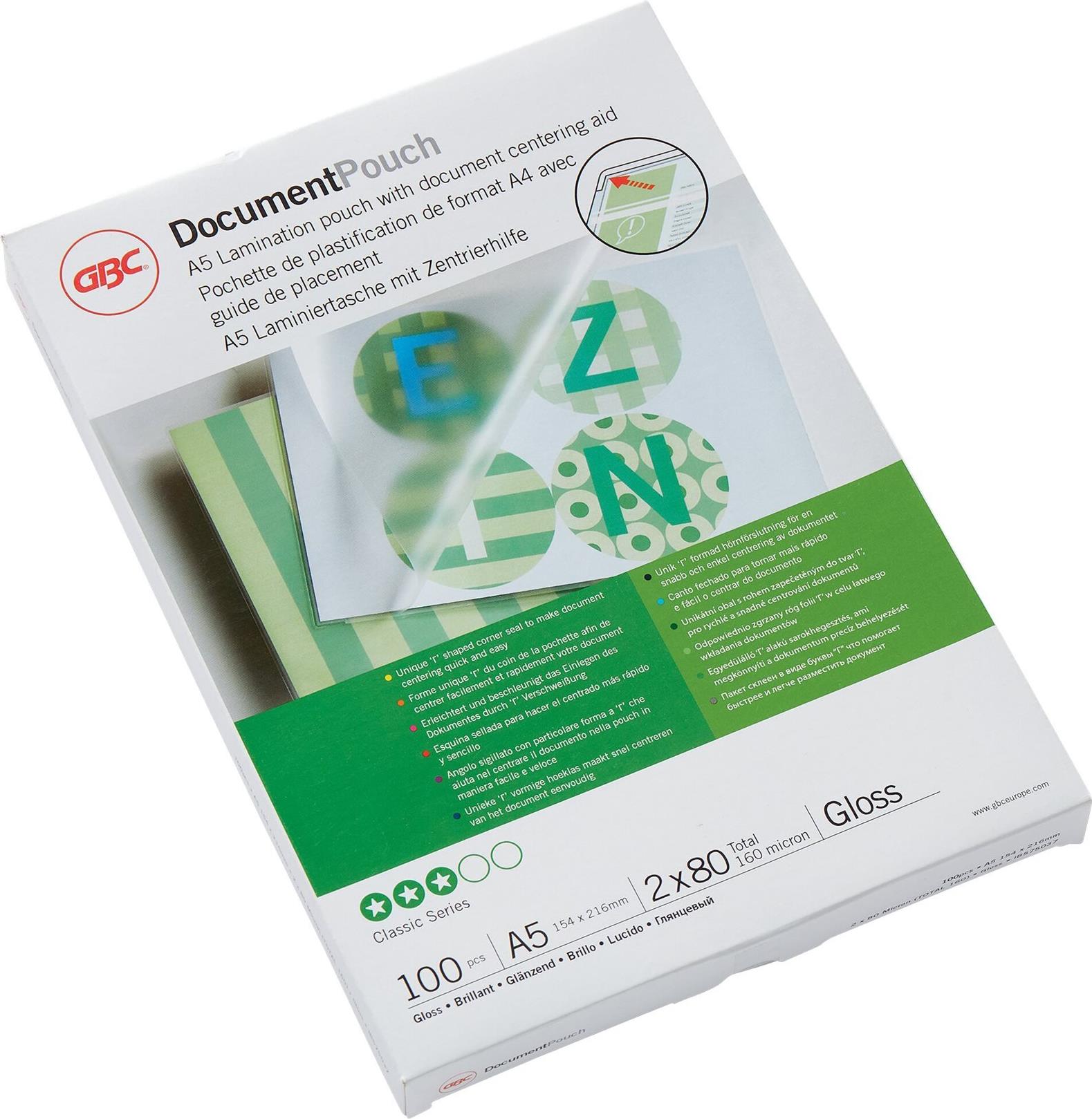 GBC Document Laminating Pouch - 80 Mikron 100er-Pack - glänzend - A5 (148 x 210 mm) - Taschen für Laminierung (IB575037)